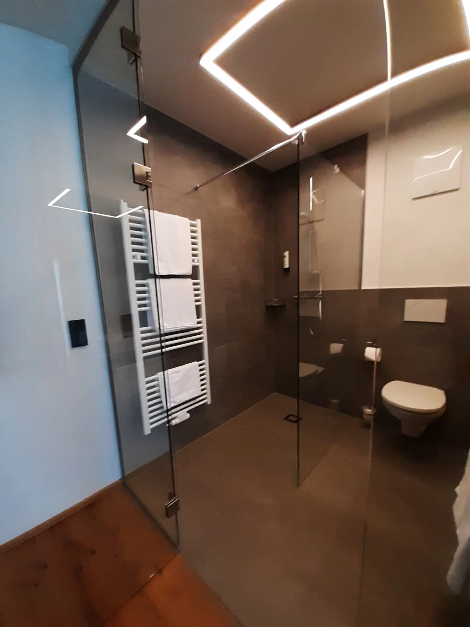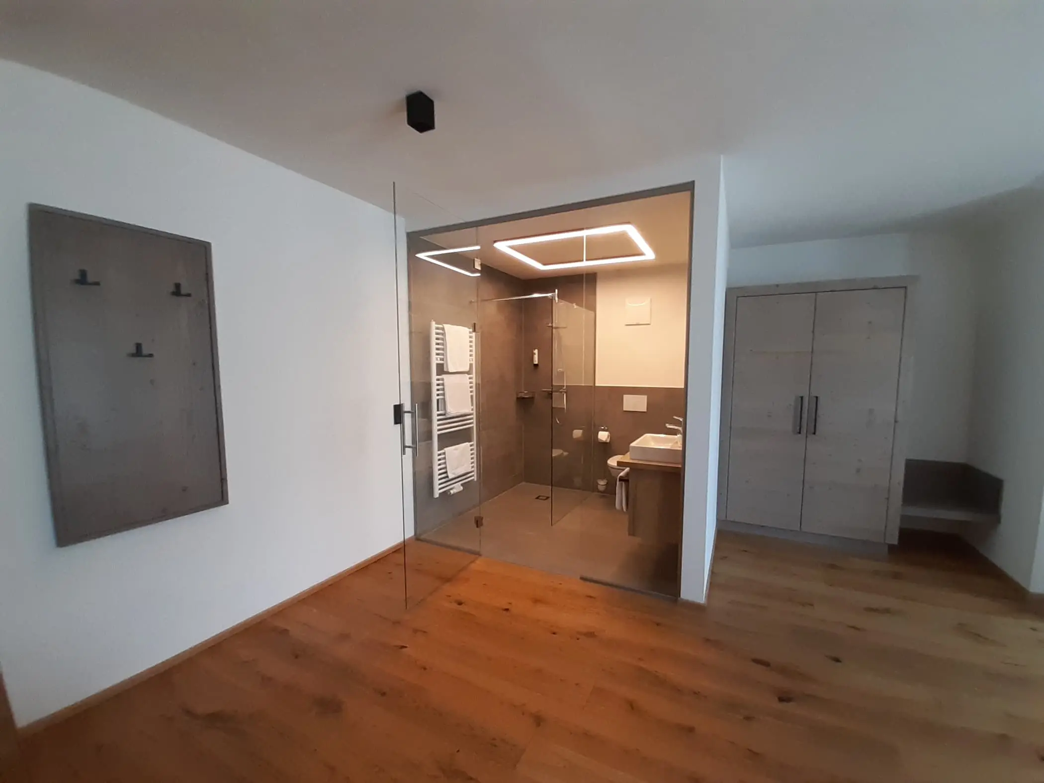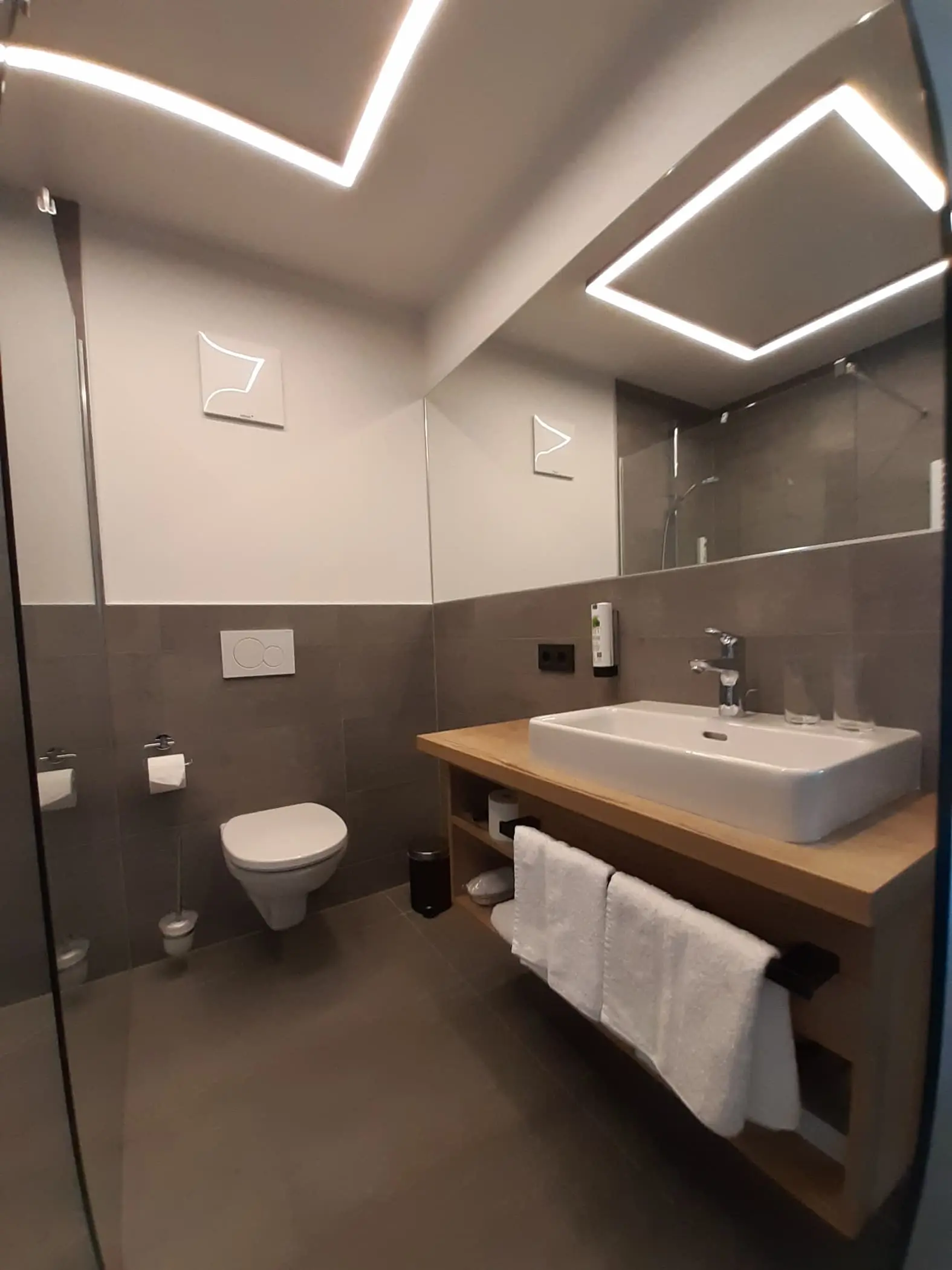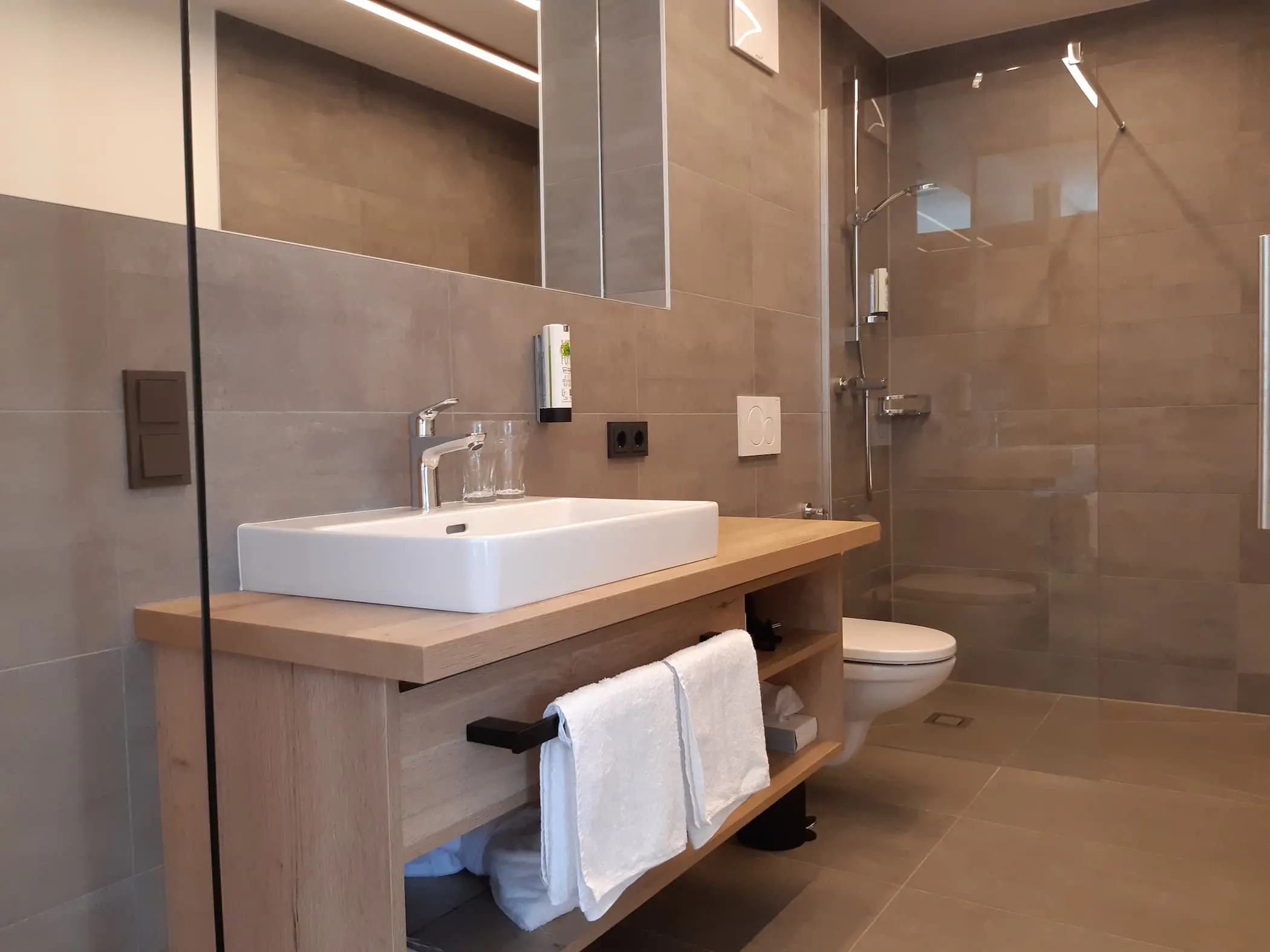 Auch die Zimmer wurden komplett neu gestaltet. Die hochwertigen, großflächigen Wand- und Bodenfliesen in den Bädern kommen besonders gut zur Geltung, da die Bäder teilweise nur durch Glaswände vom restlichen Zimmer getrennt sind und sich so harmonisch ins Gesamtbild einfügen.