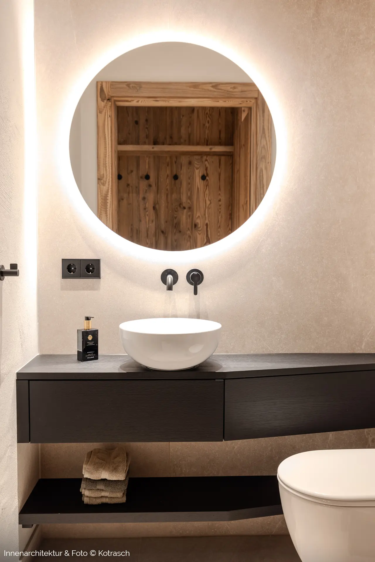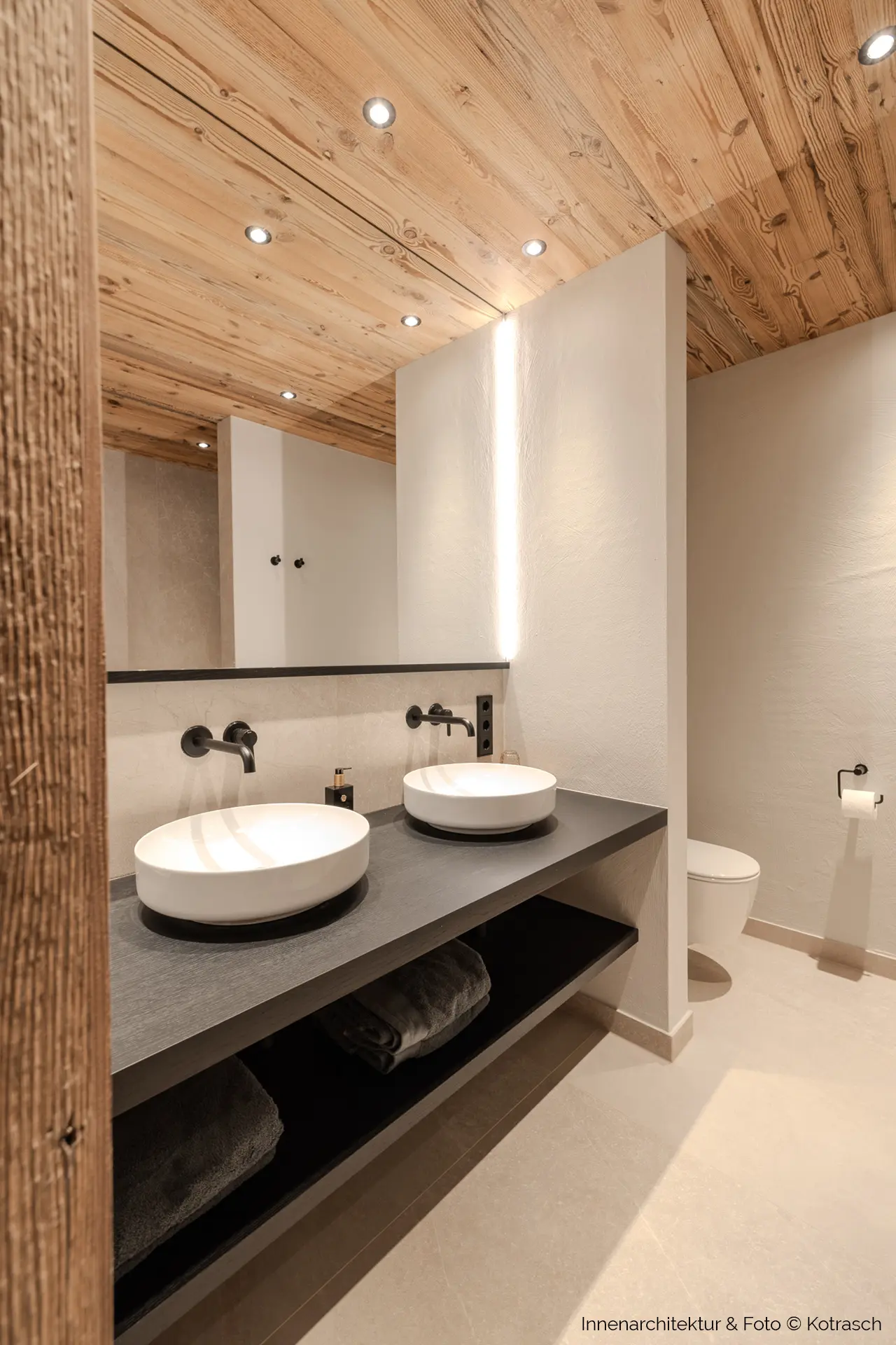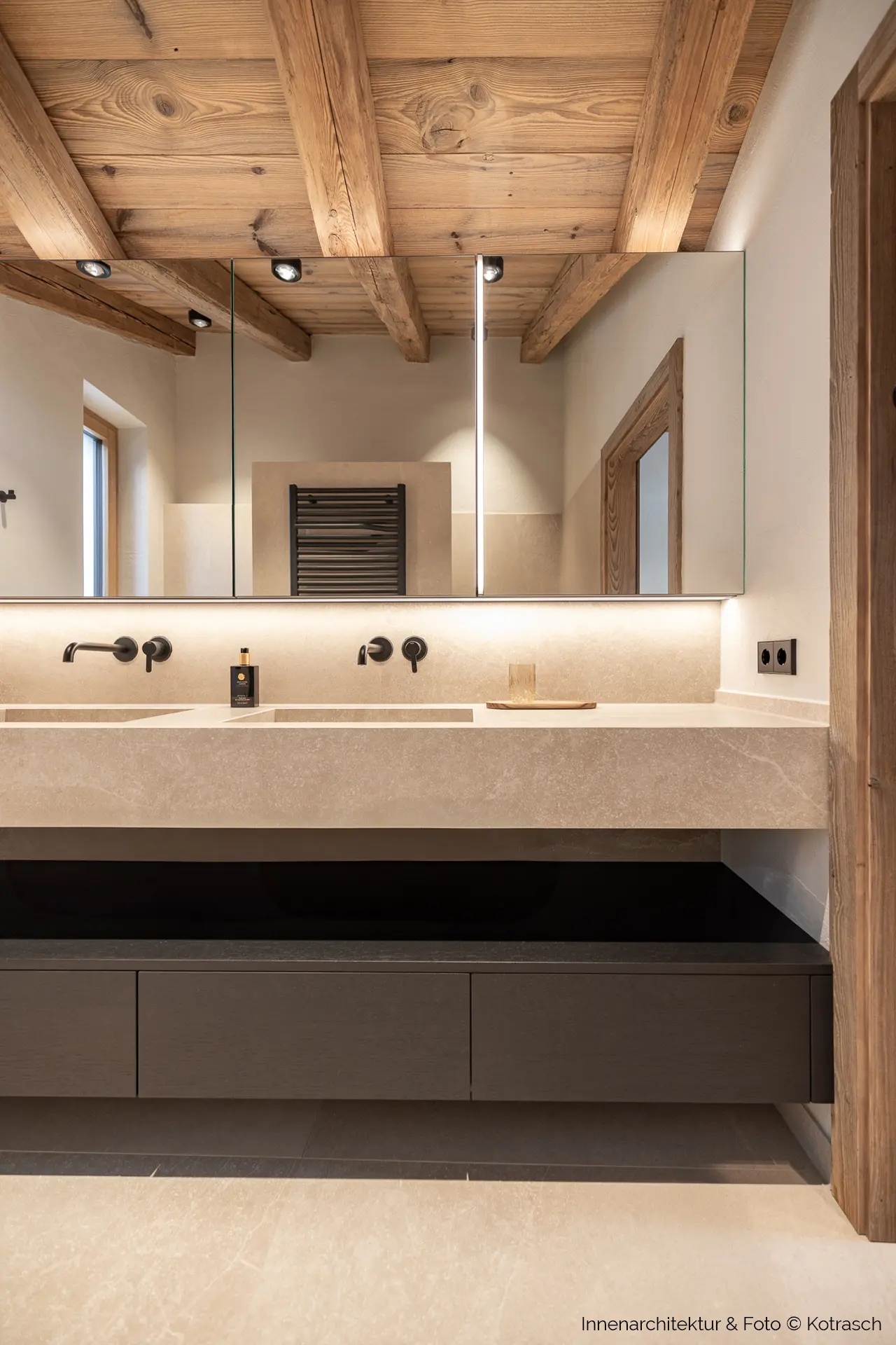 Bei dem Neubau dieser Villa, die gekonnt Elemente aus Tradition und Moderne kombiniert, haben wir großflächige, helle Fliesen verlegt, die den edlen Charakter des Hauses perfekt unterstreichen.